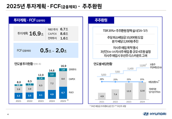 올해 판매목표로 417만대를 제시했다. 매출 전망치는 지난해보다 3~4% 수준 성장으로 내놨고, 영업이익은 7~8% 수준을 목표하고 있다고 밝혔다. 올해 16조9000억원 투자계획도 덧붙였다.