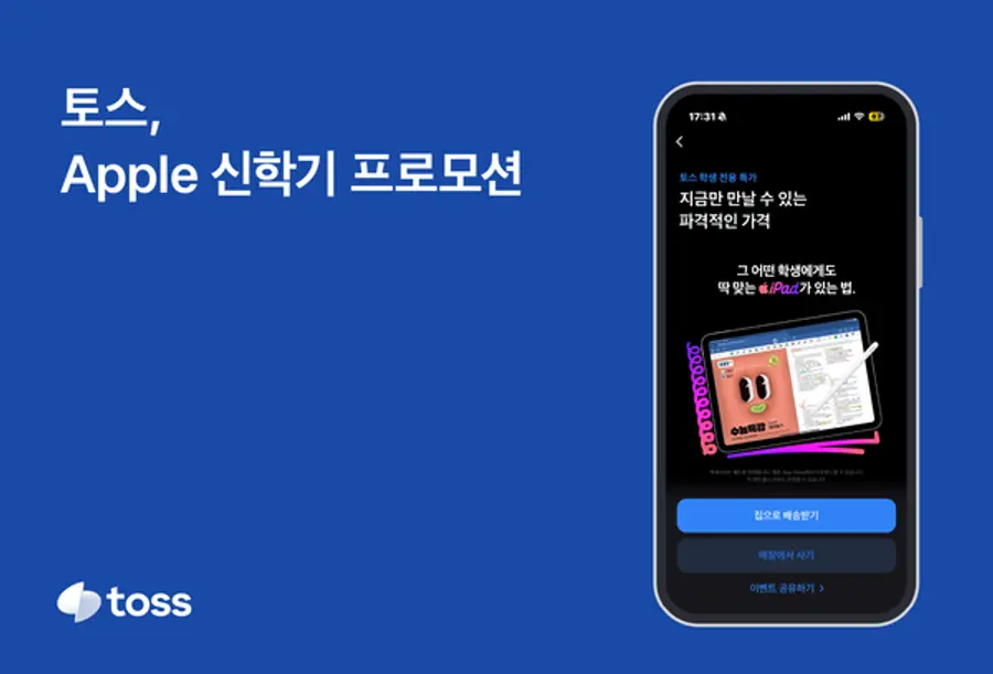 |스마트투데이=김국헌 기자| 모바일 금융 서비스 ‘토스'를 운영하는 비바리퍼블리카가 새 학기를 맞아 오는 2월 15일까지 애플과 할인 프로모션을 진행한다고 31일 밝혔다.
