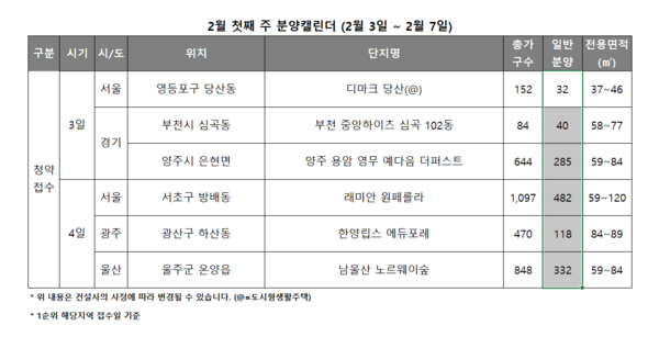 |스마트투데이=이재수 기자| 2월 첫째 주 전국 6개 단지에서 총 1289가구(도시형생활주택 포함)의 청약 접수가 진행된다.