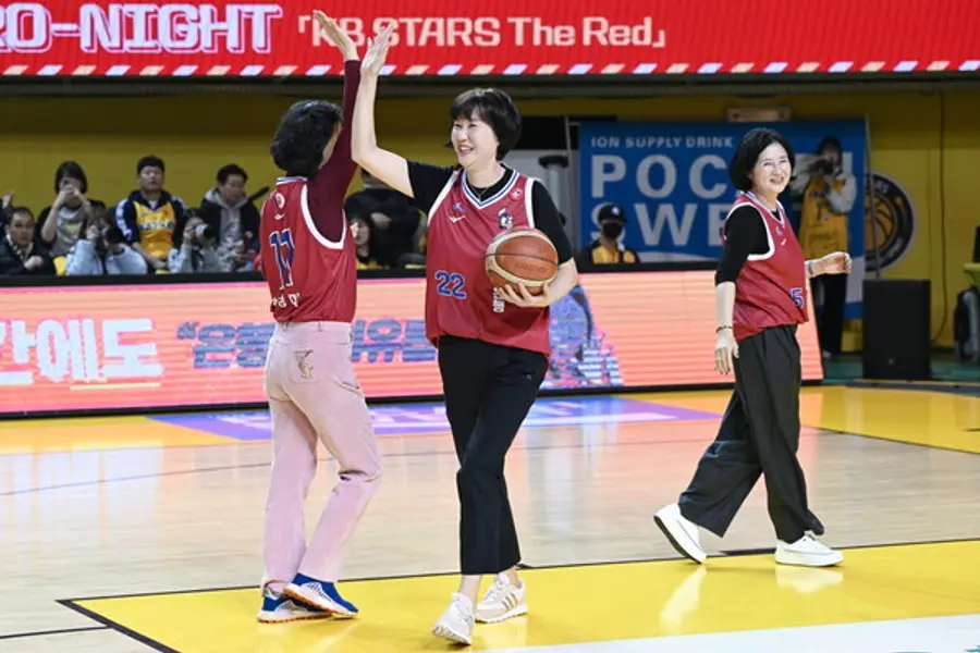 |스마트투데이=김국헌 기자| KB국민은행의 여자프로농구팀 청주 KB스타즈가 지난 1일 충북 청주시에서 열린 홈경기에서 1980년대 농구단 대표 선수 5인방을 소환해 농구대잔치 재현 행사를 열었다.