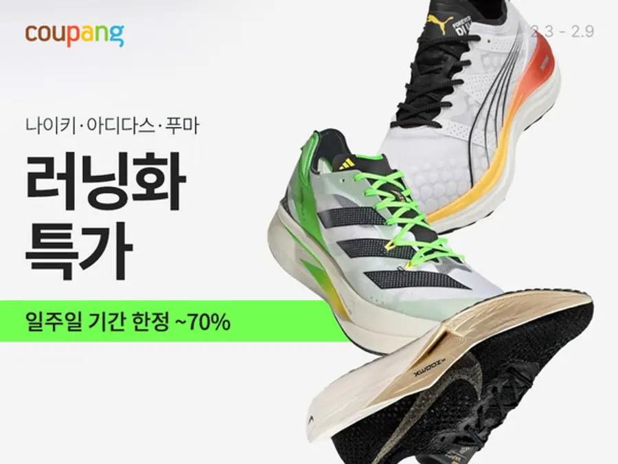 쿠팡은 고객들의 러닝 열풍을 반영해 오는 9일까지 나이키·아식스·푸마·호카 등 인기 브랜드의 170여 개 상품을 최대 70% 할인된 가격에 선보인다.