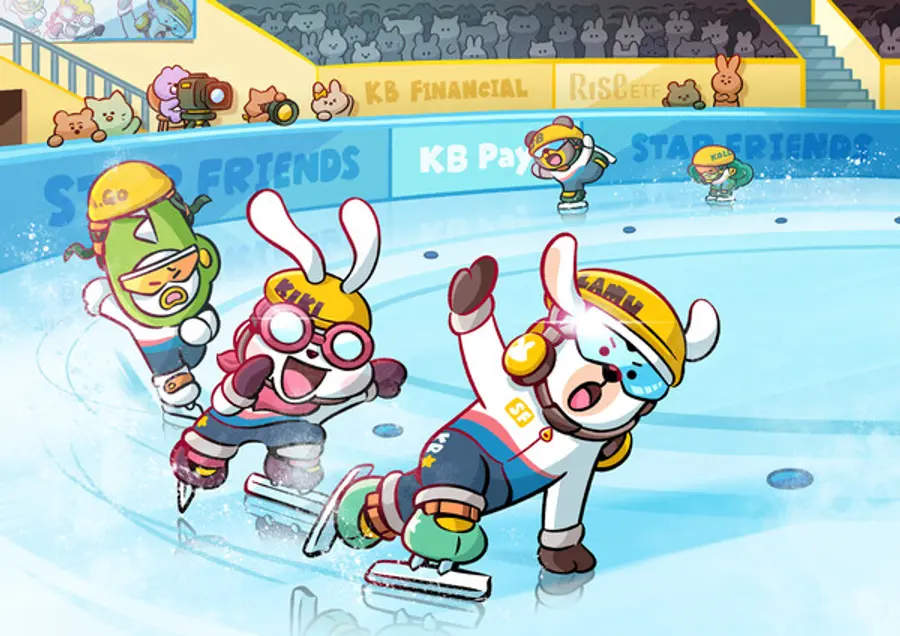KB금융은 발랄한 표정으로 동계 스포츠인 피겨 연기를 펼치는 키키 일러스트를 선보였다. 또 열정적으로 쇼트트랙 경기장을 누비는 라무와 아거 일러스트도 함께 공개했다.