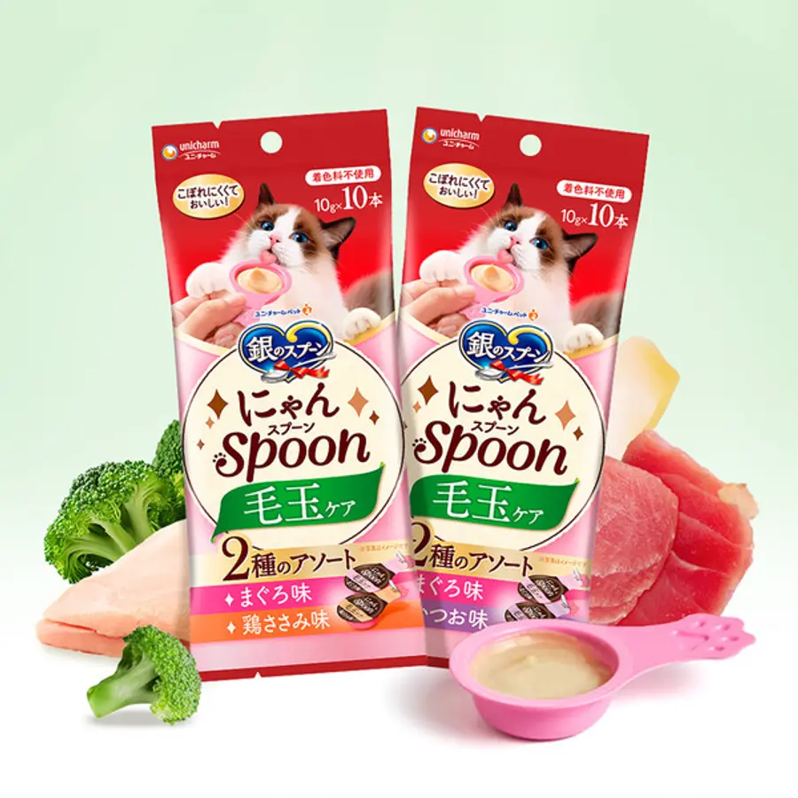 냥스푼은 참치와 닭 가슴살 등 다양한 재료를 활용한 스푼형 고양이 간식이다. 스푼 모양으로 만들어서 간편하게 먹일 수 있고, 고양이의 입맛을 사로잡는 맛과 영양소가 풍부한 제품으로 정평이 나 있다.