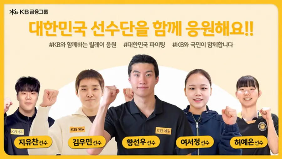 대회 기간 KB금융그룹 공식 SNS 계정에서 공개한 응원 영상에 국내 수영 간판 선수 황선우를 시작으로 선수 5인이 참여했다.
