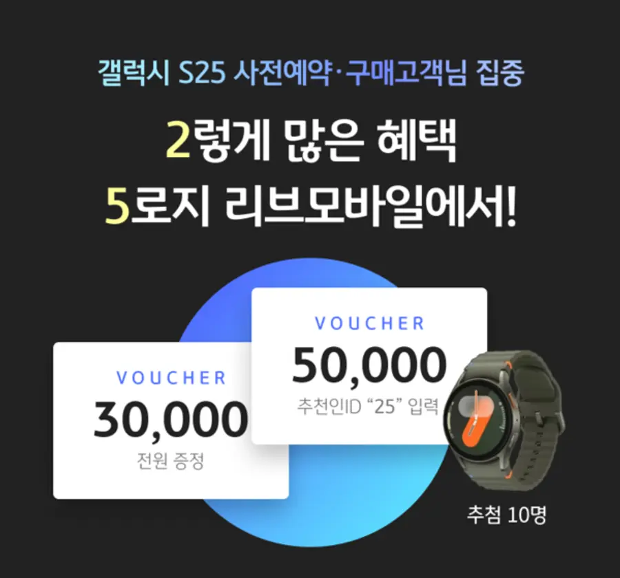 이번 이벤트는 삼성 갤럭시 S25를 구매하고, 기본료 1만원 넘는 KB리브모바일 요금제로 신규 개통하거나 번호 이동한 만 19세 이상 개인 고객을 대상으로 한다.
