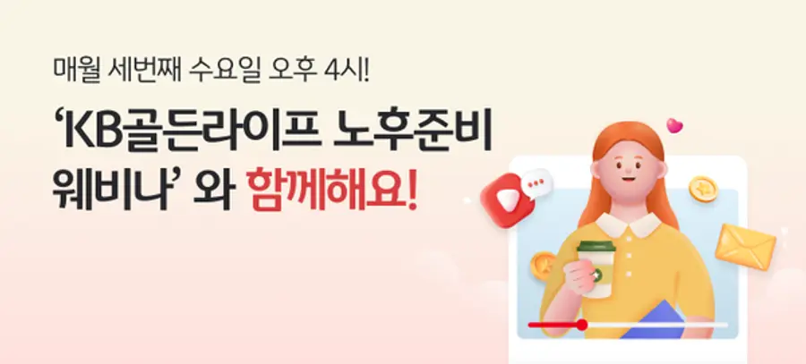 |스마트투데이=김국헌 기자| KB국민은행이 매월 세 번째 수요일마다 시니어 세대를 위한 'KB골든라이프 노후준비 웨비나'를 개최한다고 11일 밝혔다.