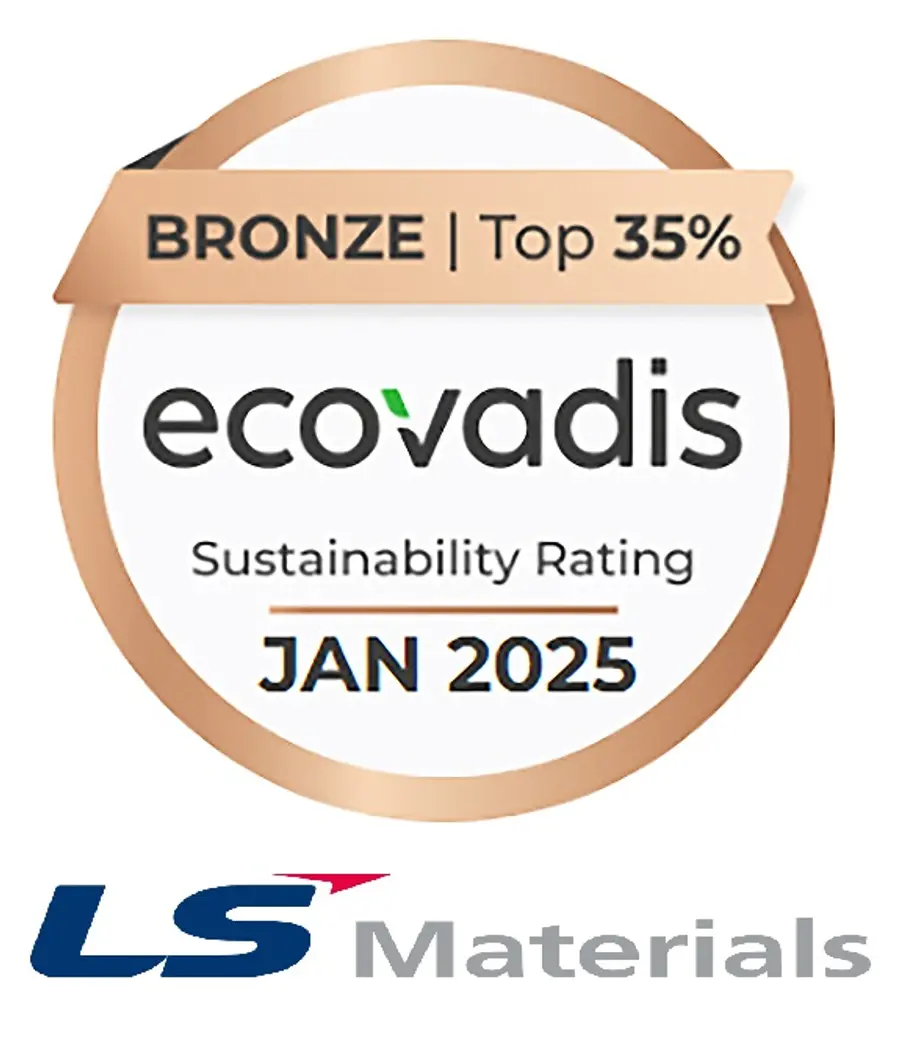 |스마트투데이=이재수 기자| LS머트리얼즈(대표 홍영호)는 글로벌 ESG 평가기관 에코바디스(EcoVadis)의 지속가능성 평가에서 ‘브론즈’ 등급을 획득했다고 12일 밝혔다.