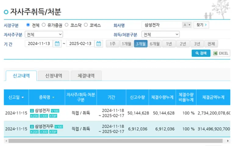 13일 한국거래소에 따르면 이날자로 삼성전자는 보통주 5014만주, 우선주 691만주를 매입했다. 작년 11월 중순 결의 당시 신고분과 일치한다.