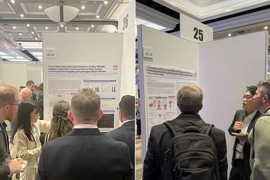 한미약품은 지난 3일부터 7일까지(현지 시각) 미국 샌디에이고에서 열린 리소좀 질환 관련 ‘WORLD Symposium 2025’에서 파브리병 치료제 ‘LA-GLA(코드명: HM15421/GC1134A)’가 기존 치료제 대비 신장기능, 혈관병 및 말초신경장애 개선 효능이 우수한 것으로 확인된 비임상 연구 결과 3건을 포스터로 발표했다고 19일 밝혔다.