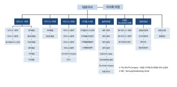 제일기획이 19일 제출한 주주총회소집공고에 첨부한 회사 조직도다.