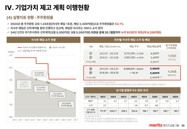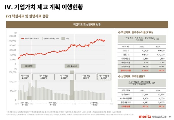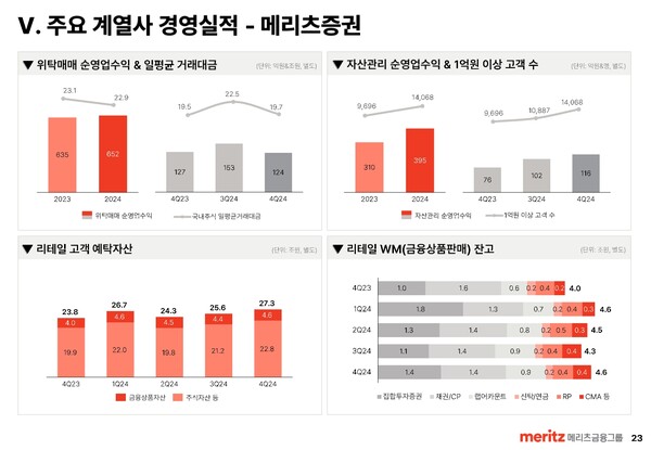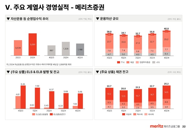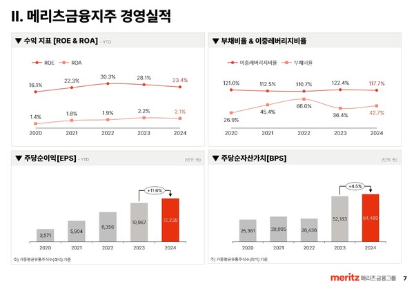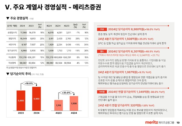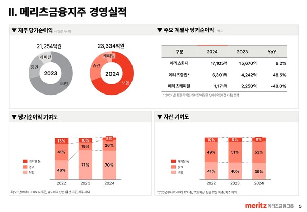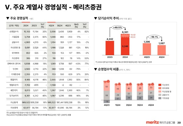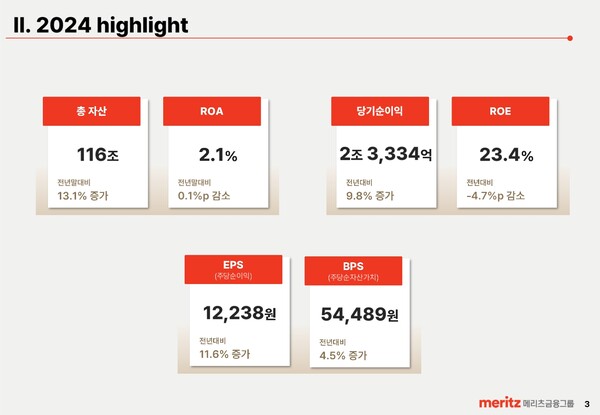 |스마트투데이=김국헌 기자| 메리츠금융지주가 19일 실적발표회에서 지난 2024년 경영실적을 발표했다. 다음은 작년 경영실적 자료다.