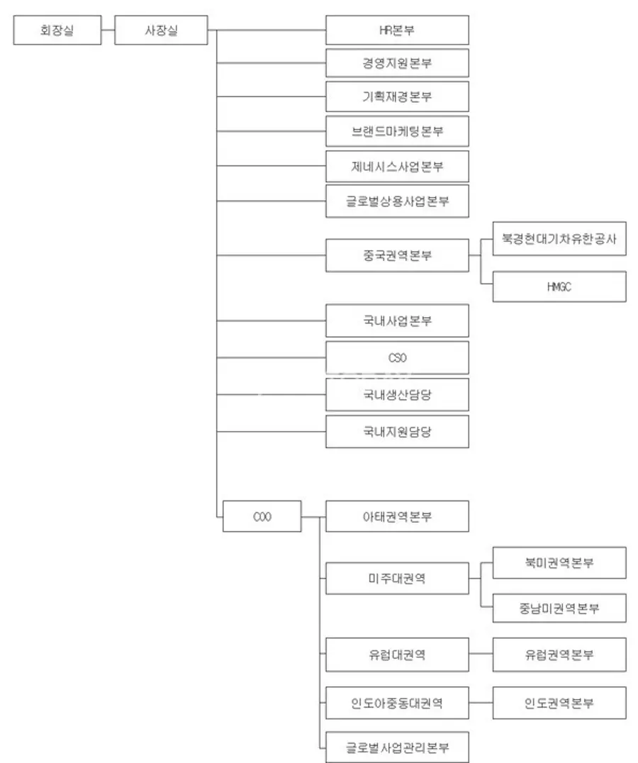 현대자동차가 19일 제출한 주주총회소집공고에서 첨부한 조직도다.