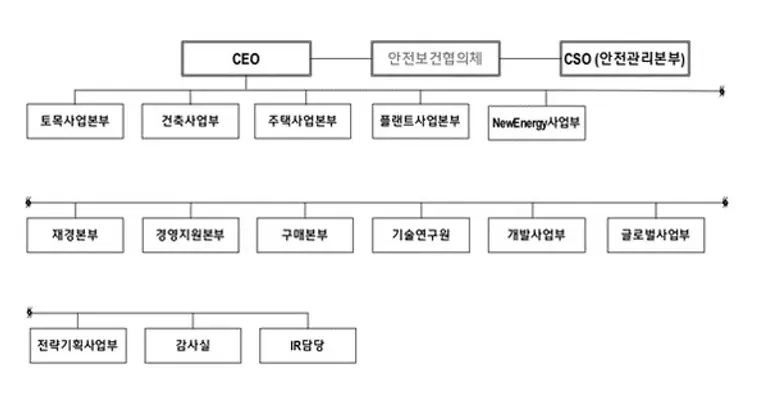 현대건설이 20일 주주총회소집공고를 공시하면서 첨부한 조직도다. 1년 전과 비교할 때 변화된 모습은 없다.
