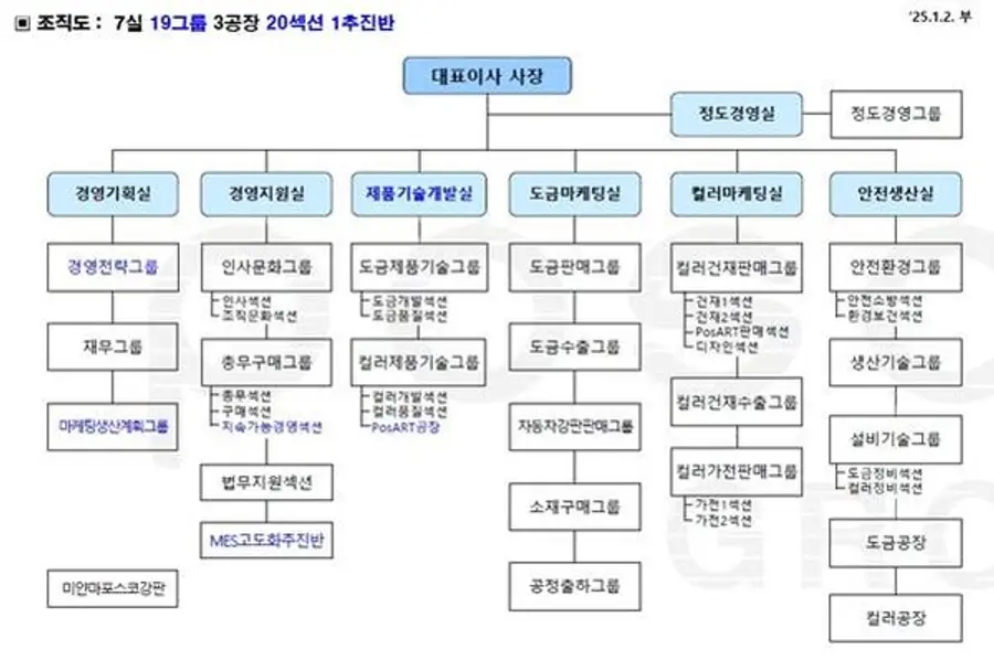 포스코그룹 포스코스틸리온의 2025년 2월 조직도다.