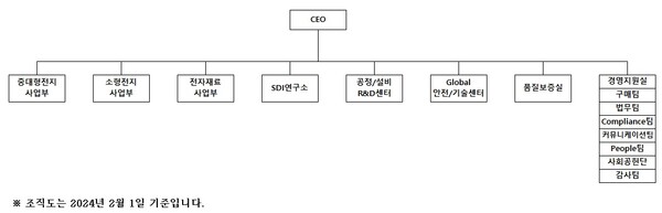 삼성SDI가 최근 제출한 2025 정기 주주총회 소집공고에 첨부한 조직도다.