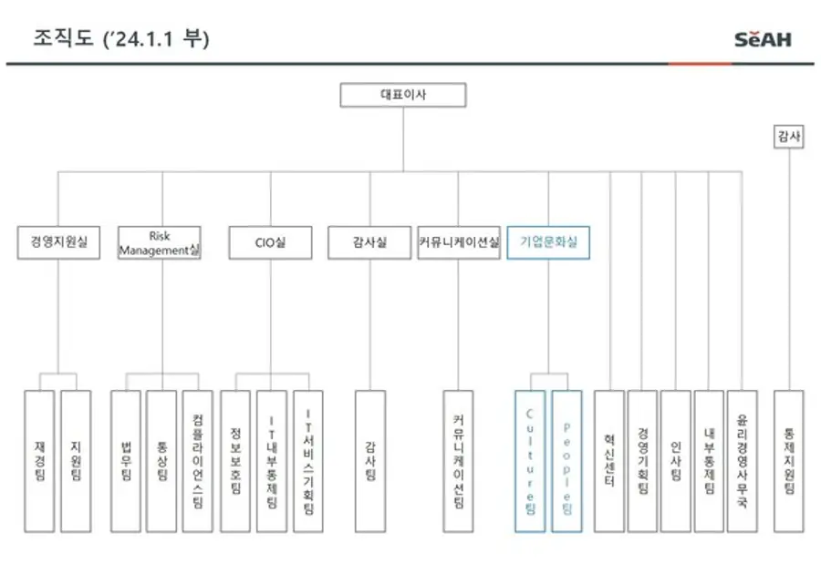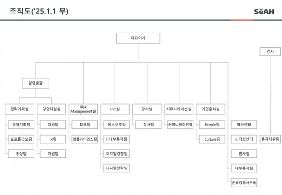 세아홀딩스가 최근 제출한 2025 정기 주주총회 소집공고에 첨부한 조직도다.