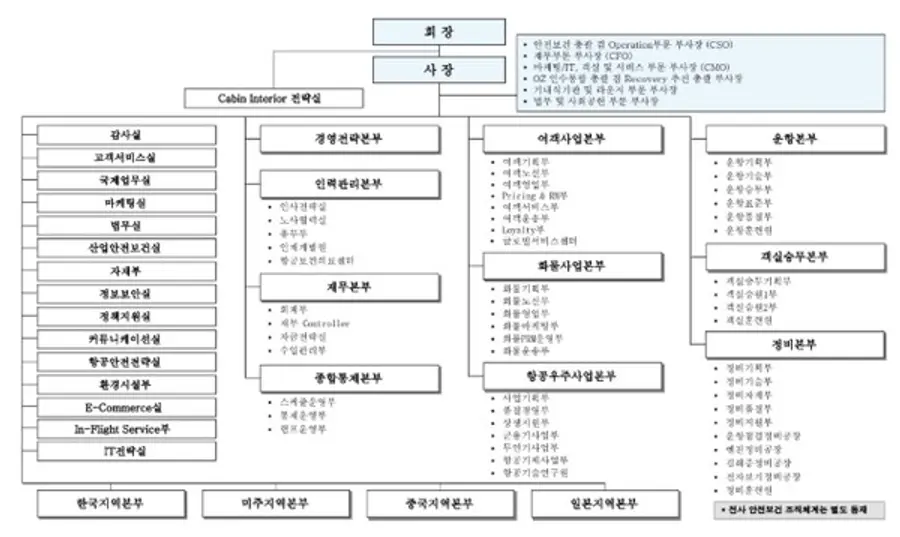대한항공이 최근 제출한 2025 정기 주주총회 소집공고에 첨부한 2025년 2월 현재 조직도다.