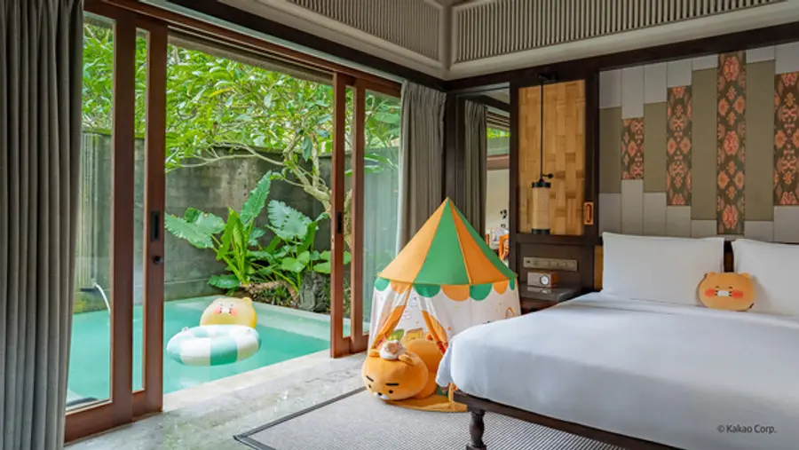 ‘발리에 찾아온 카카오프렌즈’라는 콘셉트로, 가든 풀 빌라 객실을 카카오프렌즈 캐릭터 상품과 특별 제작된 어메니티로 꾸며 색다른 경험을 제공한다.