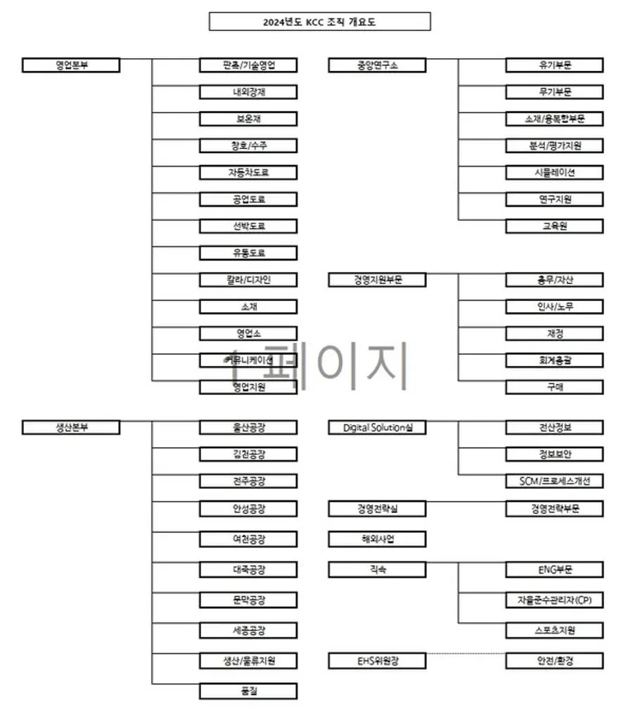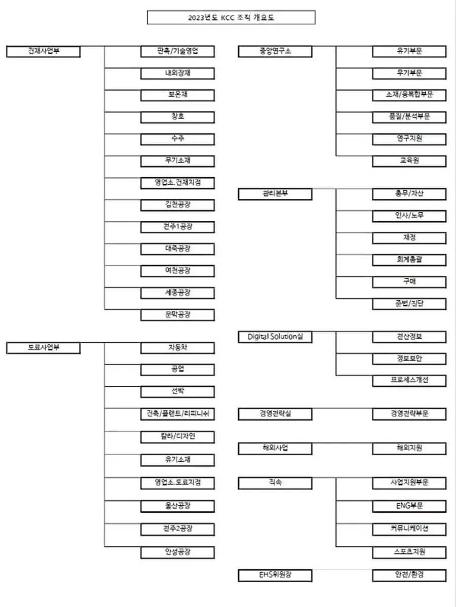 케이씨씨(KCC)가 최근 제출한 2025 정기 주주총회 소집공고에 첨부한 조직도다.