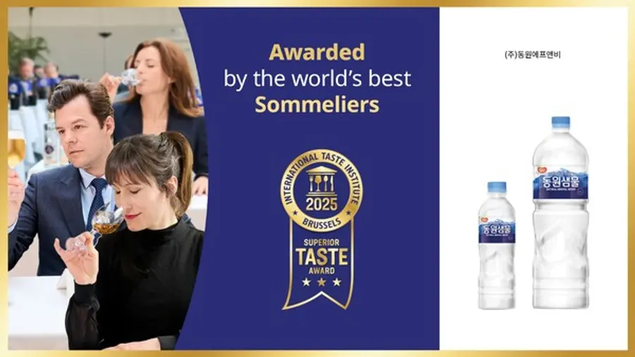 |스마트투데이=김윤진 기자| 동원F&B(대표이사 김성용)의 먹는샘물 브랜드 동원샘물이 ‘2025 국제식음료품평회’에서 국제 우수 미각상 가운데 최고 등급인 ‘3스타’를 수상했다고 26일 밝혔다.