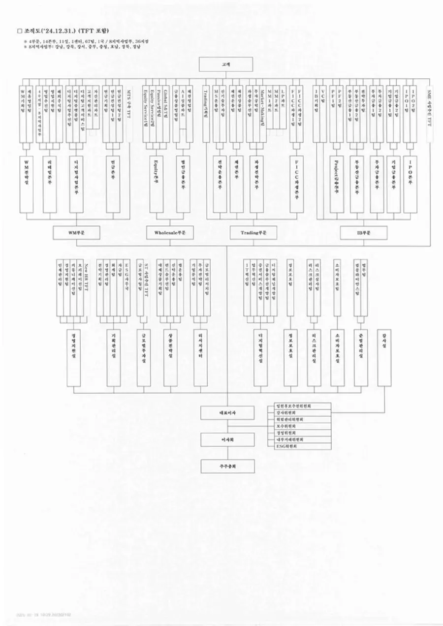 한화투자증권이 지난 25일 2025년 정기 주주총회 소집공고에 첨부한 2025년 2월 현재 조직도다.