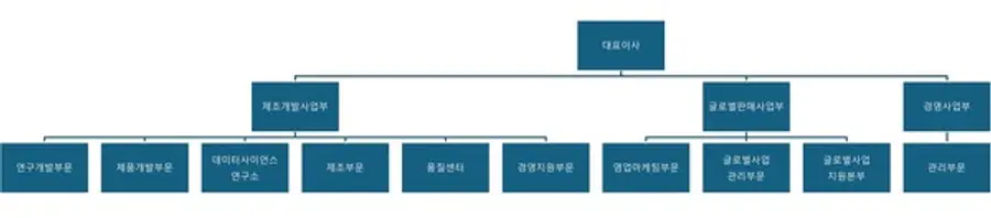 대표이사 아래 제조개발사업부와 글로벌판매사업부, 경영사업부가 편제돼 있다.
