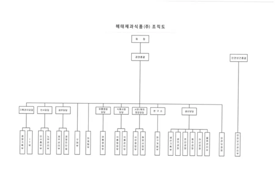 해태제과식품이 26일 2025 정기주주총회 소집공고에 첨부한 조직도다.