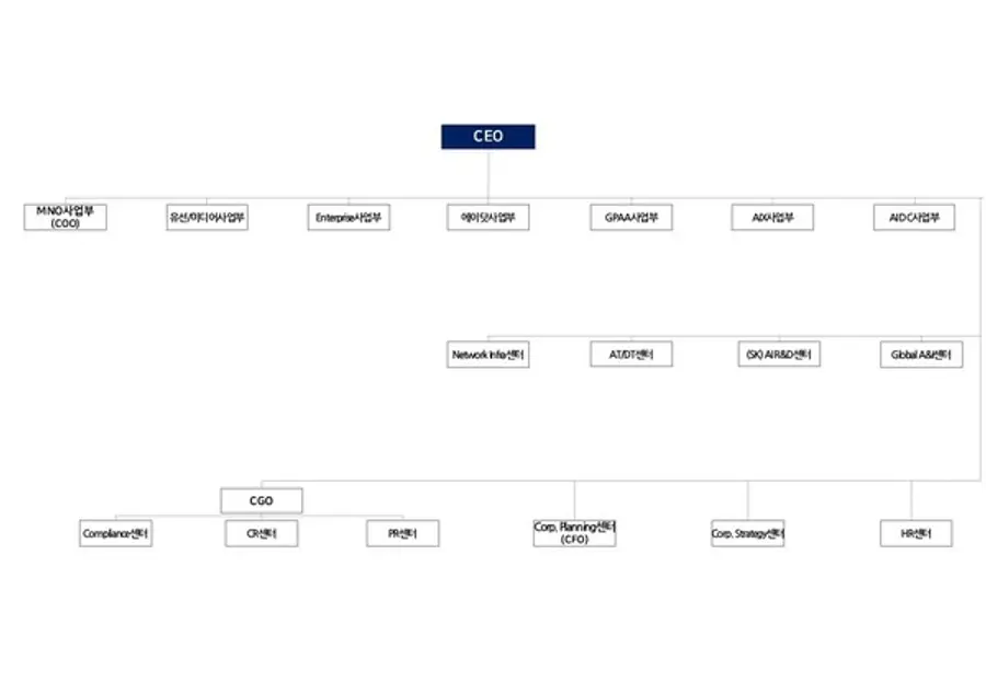 SK텔레콤이 28일 공고한 정기주주총회 소집공고에 첨부된 2025년 2월 현재 조직도다.