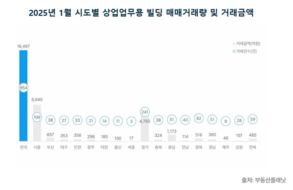 빅데이터 기반 상업용 부동산 전문 기업 부동산플래닛은 4일 '2025년 1월 전국 상업·업무용 빌딩 거래 시장 분석' 결과를 발표했다.