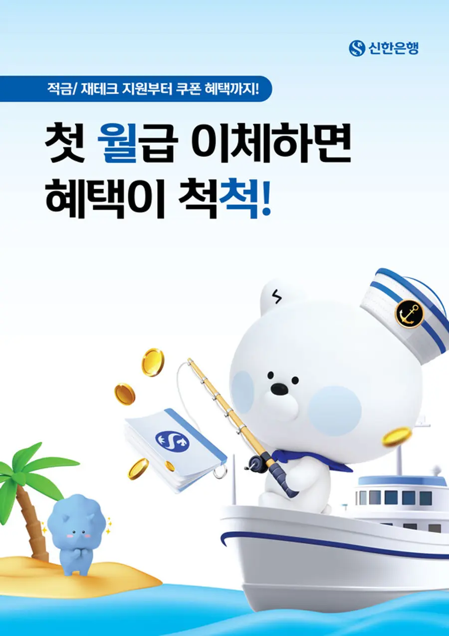 신한은행은 첫 급여이체 고객에게 ▲신한머니쿠폰(적금 가입용) 3만원권 ▲신한투자증권 해외주식상품권 2만원권(S-lite 최초 개설) 등 5만원 상당의 쿠폰을 제공한다.