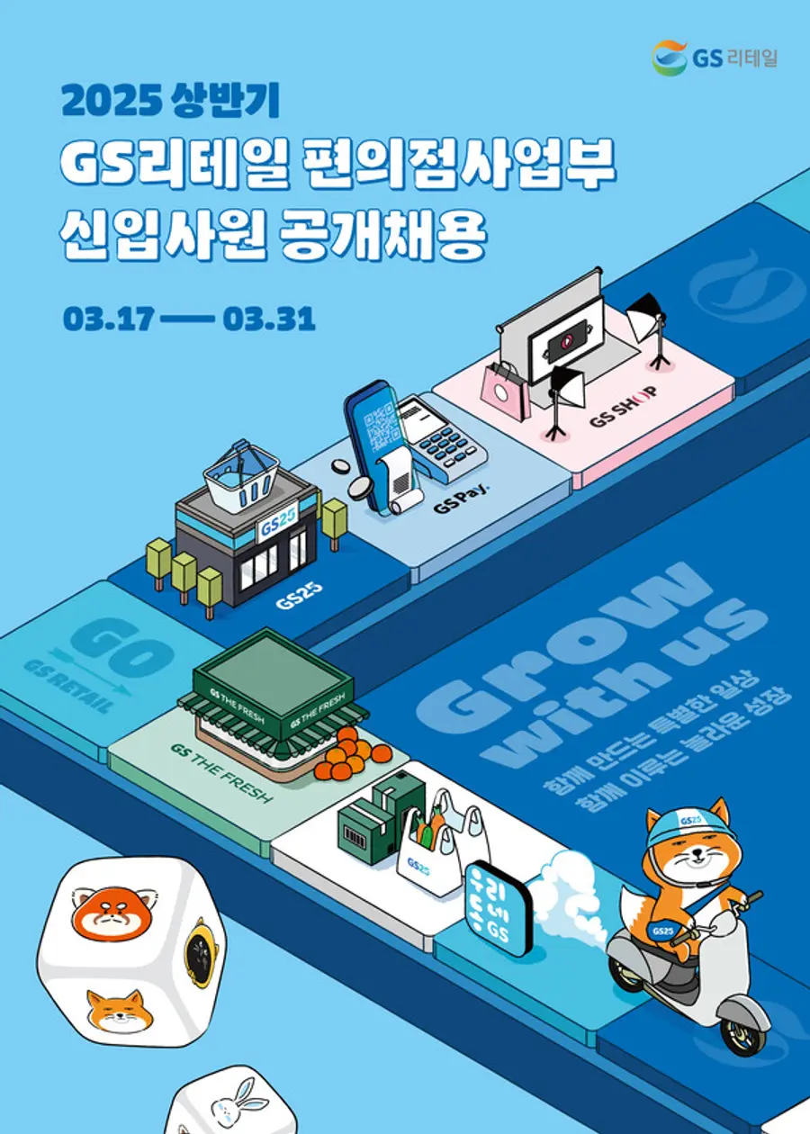 정영태 GS리테일 인사총무본부장은 “GS25 2025년 상반기 신입사원 채용은 공정하고 혁신적인 방식으로 유통업계의 새로운 변화를 이끌어갈 인재를 선발하는 데 중점을 두고 있다”며 “창의적이고, 미래 성장 가능성이 높은 많은 지원자들의 관심을 기대한다”고 밝혔다.