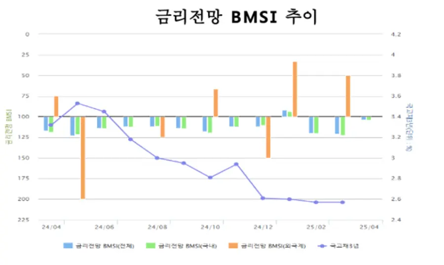 러시아, 우크라이나 종전에 대한 기대감이 상승하고, 상반기 국내 국고채 공급물량 등 수급요인으로 인해 4월 금리하락 응답자가 전월 대비 감소한 것으로 나타났다.