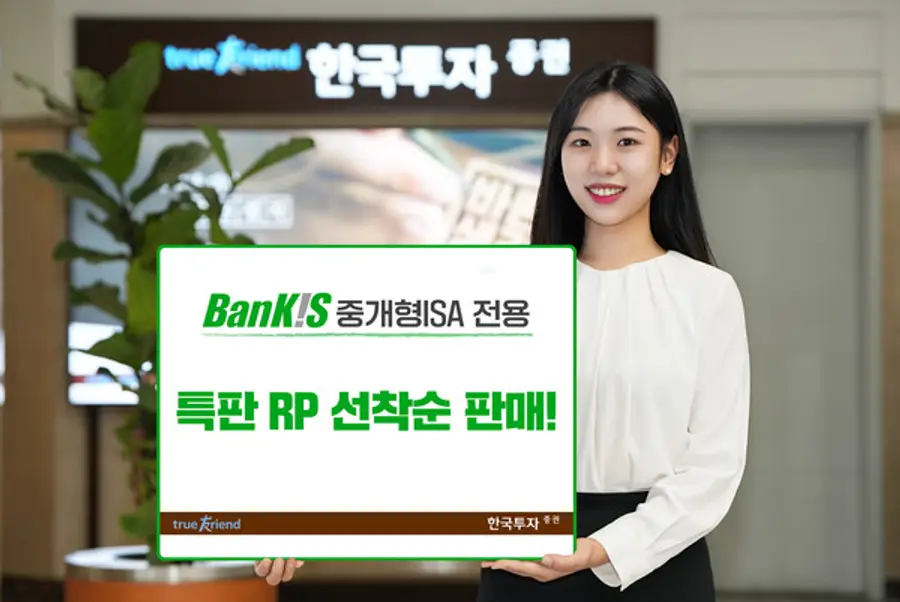 |스마트투데이=김세형 기자| 한국투자증권(사장 김성환)은 뱅키스(BanKIS) 중개형 ISA 계좌 전용 특판RP를 선착순 판매한다고 24일 밝혔다. 뱅키스는 한국투자증권의 비대면 및 시중은행 연계 온라인 전용 계좌 서비스다.