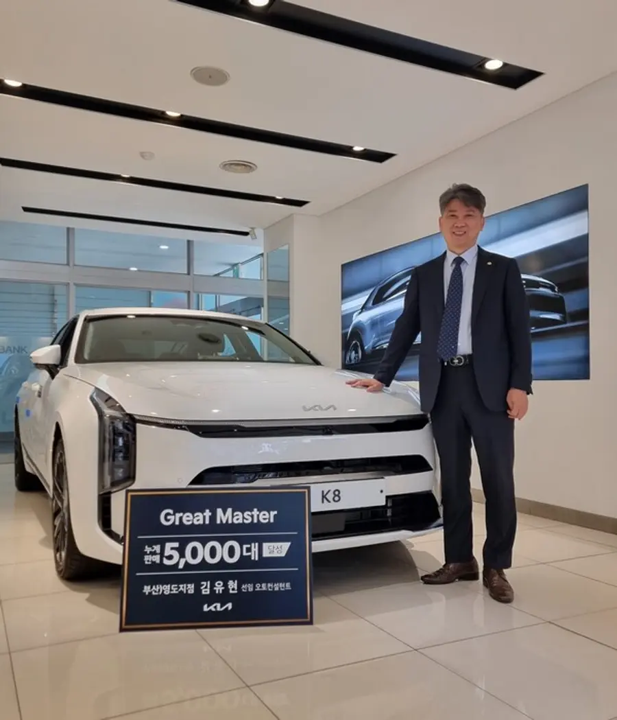 기아는 부산 영도지점 김유현 선임 오토컨설턴트가 누계 판매대수 5천대를 달성해 ‘그레이트 마스터(Great Master)’에 올랐다고 26일 밝혔다.
