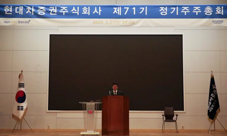 현대차증권은 27일 서울시 여의도에 위치한 한국화재보험협회빌딩에서 제71기 정기주주총회를 개최해 부의한 주요 안건을 가결하며 이 같이 밝혔다.