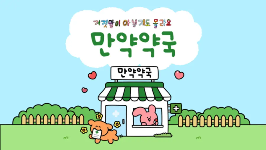 환아인 마음작가가 그린 좋아하는 사람에게 힘을 주는 ‘덕분이약’, 몸과 마음이 건강하고 튼튼해지는 ‘건강뿐이약’ 등 을 처방받을 수 있으며, 메시지를 담아 카카오톡 친구에게 공유할 수 있다.