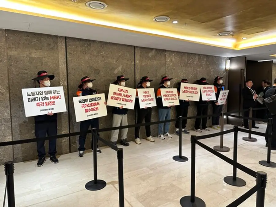영풍과 손잡고 적대적M&A작업을 진두지휘했던 김광일 부회장은 이날 고려아연 주총장에 모습을 드러내지 못했다. 대신 홈플러스 노조는 주총장을 찾아 MBK 주도하에 기습적으로 기업회생절차를 신청한 것을 강력하게 비판하면서 김병주 회장과 김광일 부회장의 사재 출연은 물론 형사처벌을 촉구하는 시위를 벌였다.