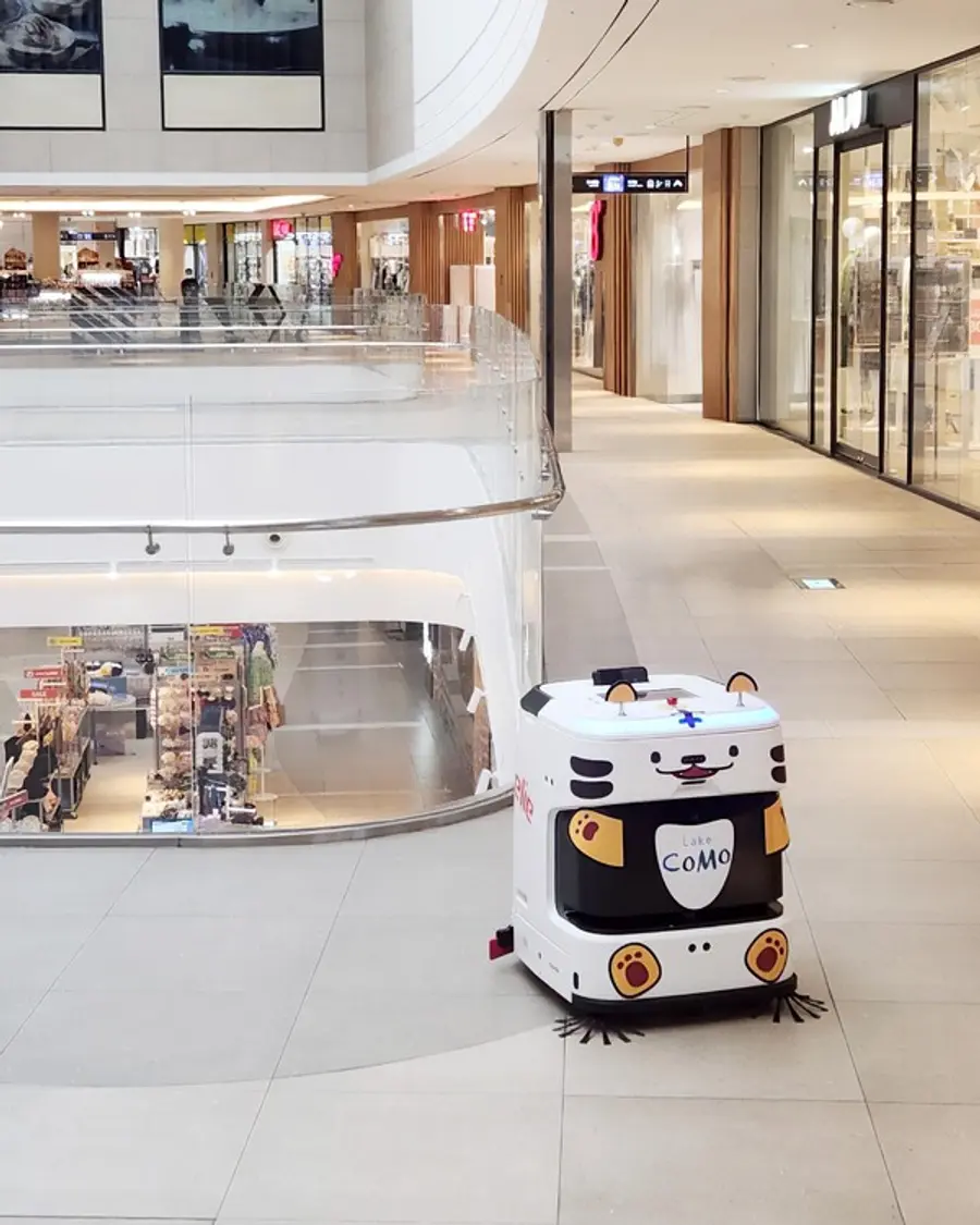 우미에스테이트는 경기도 화성시 동탄대로에 위치한 복합상업공간 ‘레이크 꼬모’에 AI 기반 청소로봇 ‘휠리 J40’을 배치하고, 시설 운영 자동화와 효율성을 강화했다.