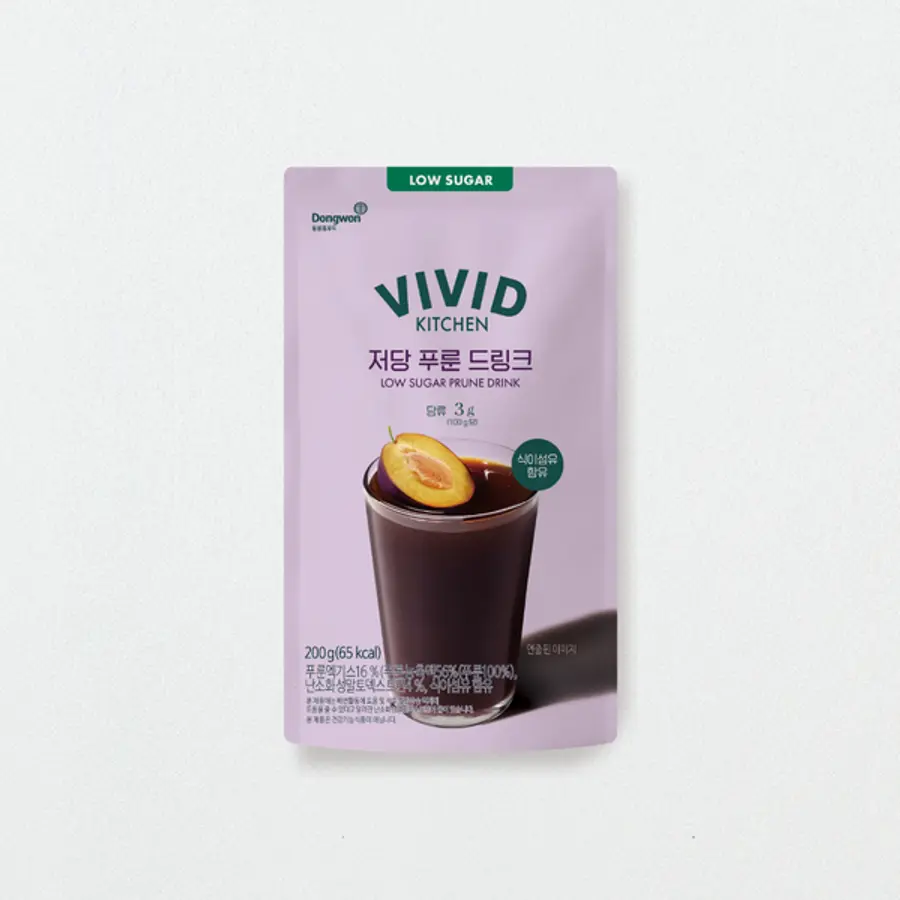 ‘비비드키친 저당 푸룬 드링크’는 푸룬엑기스가 함유된 과채 음료로, 장 건강과 식단 관리를 동시에 챙길 수 있는 제품이다. 한 팩(200g)의 당류와 칼로리가 각각 6g, 65kcal에 불과하며, 이는 동일 식품 유형 대비 20~30% 수준이다. 대체당을 활용해 당과 칼로리를 낮췄지만 푸룬의 부드럽고 새콤달콤한 맛은 그대로 구현한 점이 특징이다.