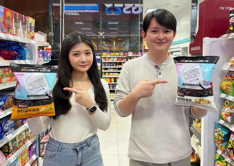 첫 번째 사례로, GS25는 ‘2025 전국민 보장검진 대축제’라는 삼성생명의 광고 메시지를 담은 팝콘 2종(시네마, 버터갈릭)을 3월 말 출시했다.