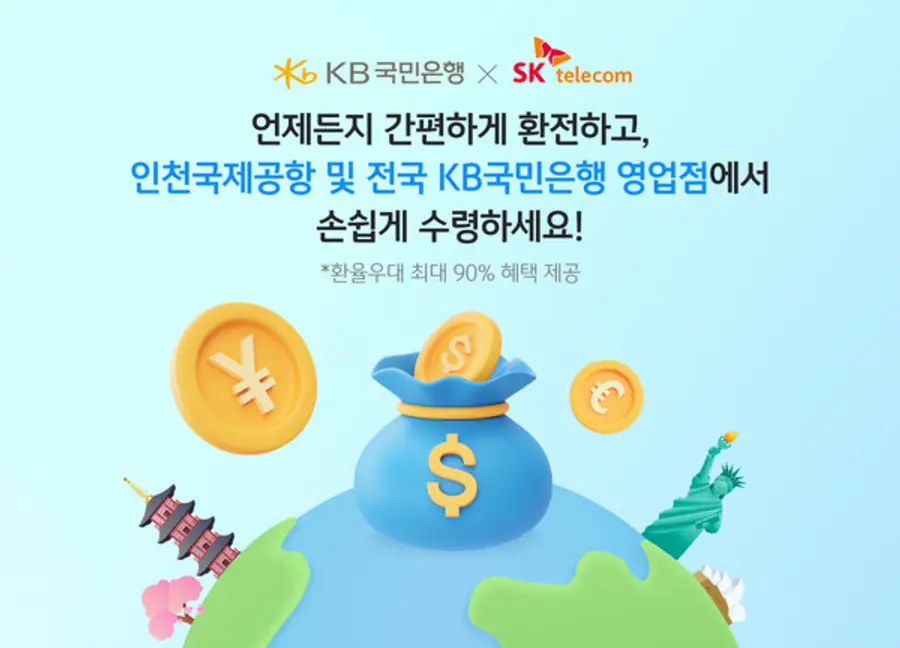 환전 신청한 외화는 KB국민은행 전국 영업점과 인천국제공항 내 KB국민은행 환전소에서 간편하게 수령할 수 있다. 이를 위해 KB국민은행은 SKT와 마케팅 업무제휴를 체결했다.