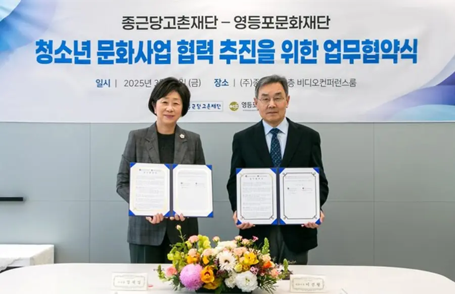 |스마트투데이=김윤진 기자| 종근당고촌재단(이사장 정재정)은 최근 영등포문화재단(대표이사 이건왕)과 ‘청소년 문화사업 협력 추진을 위한 업무협약(MOU)’을 체결했다고 3일 밝혔다.