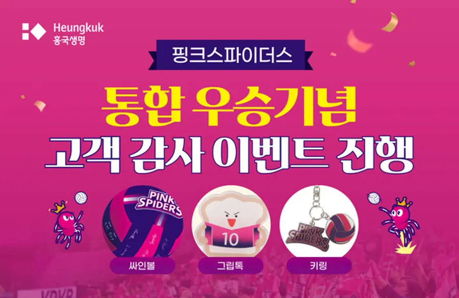 |스마트투데이=김국헌 기자| 태광그룹 금융계열사 흥국생명은 여자 프로배구 흥국생명 핑크스파이더스의 2024-2025시즌 통합우승을 기념해 고객 감사 이벤트를 연다고 9일 밝혔다.