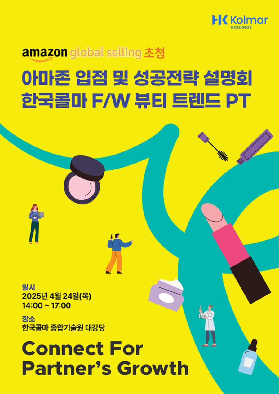 세미나는 오는 24일 서울 서초구 소재 한국콜마 종합기술원에서 진행된다. 콜마홀딩스는 ‘아마존 입점 및 성공 전략’과 ‘2025 F/W 뷰티 트렌드’를 주제로 한 강연을 제공할 예정이다.