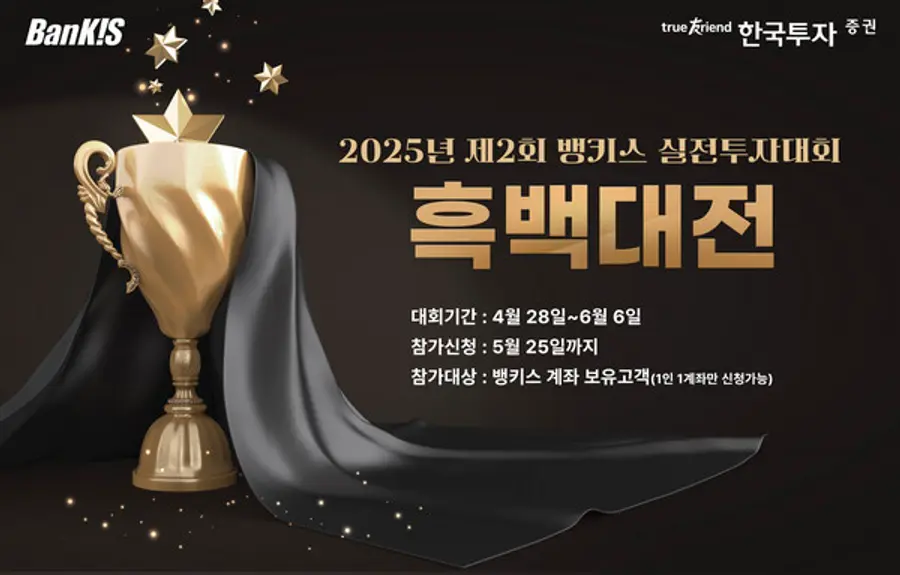 |스마트투데이=김세형 기자| 한국투자증권(사장 김성환)은 온라인 서비스 뱅키스 고객을 대상으로 ‘2025년 제2회 실전투자대회’를 개최한다고 16일 밝혔다.