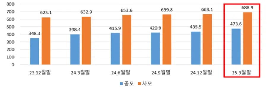 자금 모집 유형별로는 공모펀드의 순자산총액이 473조6000억원, 사모펀드는 688조9000억원으로 집계됐다.