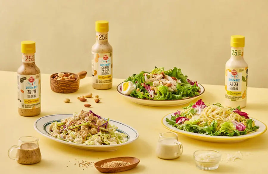 이번 신제품은 유화형 타입으로 ‘참깨 드레싱’, ‘아몬드캐슈넛 드레싱’, ‘시저 드레싱’ 등 총 세 가지 제품이다. ‘참깨 드레싱’은 볶음 참깨의 고소함과 간장의 감칠맛을 구현했으며, ‘아몬드캐슈넛 드레싱’은 견과류의 고소함과 깊은 부드러움을 담았다. ‘시저 드레싱’은 파마산 치즈와 엔초비의 고소한 감칠맛을 느낄 수 있다.