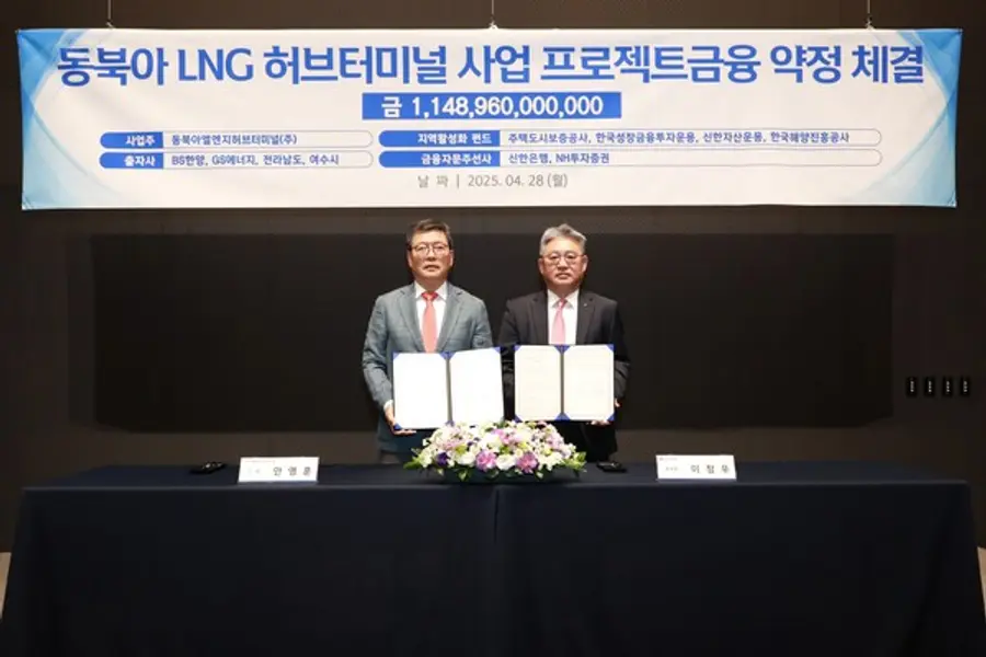|스마트투데이=이재수 기자| 동북아엘엔지허브터미널(대표 안영훈)이 동북아LNG허브터미널 개발사업을 위한 1조 1000억원 규모의 프로젝트금융(PF) 대출 약정을 체결했다고 28일 밝혔다.