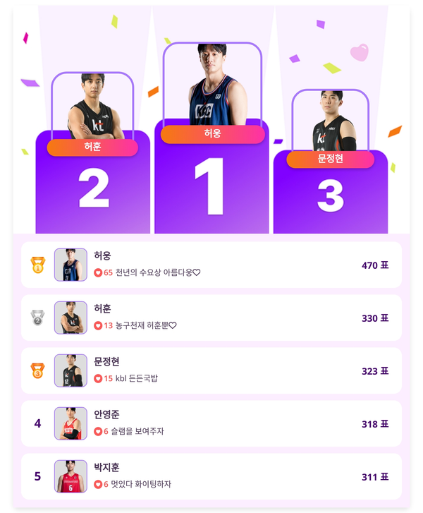 이번 투표 결과는 실력과 인기를 모두 갖춘 선수들이 상위권에 포진하며 농구 팬들의 눈높이를 충족시켰다는 점에서 의미가 깊다. 특히 허웅과 허훈 형제가 나란히 1·2위를 차지한 점은 ‘농구 가족’의 저력을 다시금 입증한 장면이다.