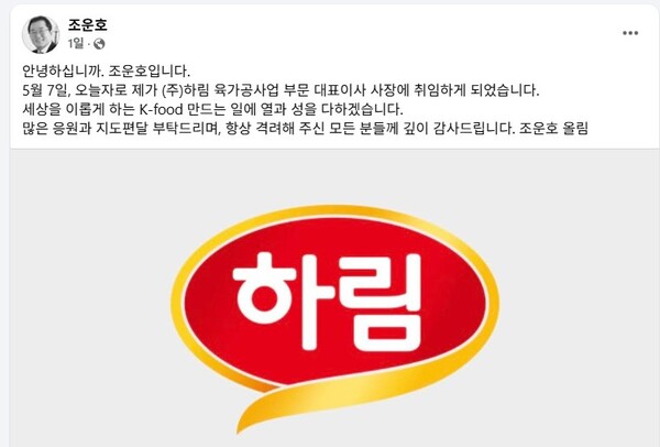 한편, 하림은 지난 7일자로 육가공사업부문 사장에 조운호 전 하이트진로 전 대표이사(위 사진)를 영입했다.